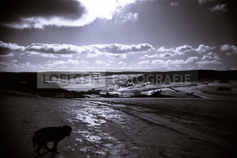Fränkische Landschaft Schnee, am späten Nachmittag